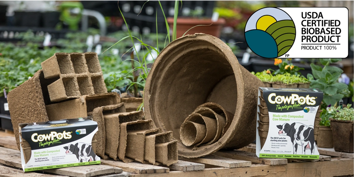 We manufacture biodegradable pots and products on our family's farm using 100% renewable and recycled, composted cow manure. We began by offering the horticultural industry a more sustainable alternative to plastic and peat. We have the ability to prototype and custom build products for packaging, surveying, hunting, and other industries. We also offer biodegradable pots wholesale.